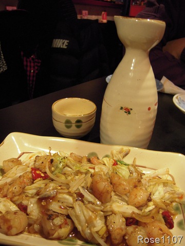 大壺熱清酒和<蝦仁辣椒醬燒>~