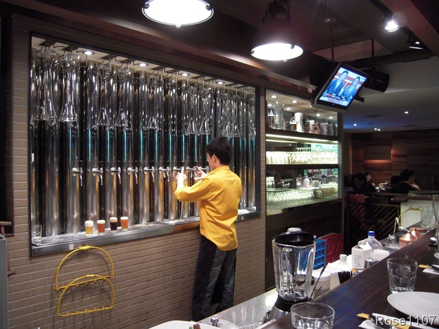 吧檯的帥哥~手腳俐落的倒著啤酒……