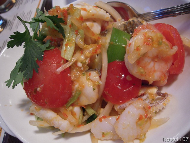 <涼拌海鮮>新鮮蝦仁.花枝.蟹肉.鱸魚等海鮮,加上芹菜.小蕃茄.