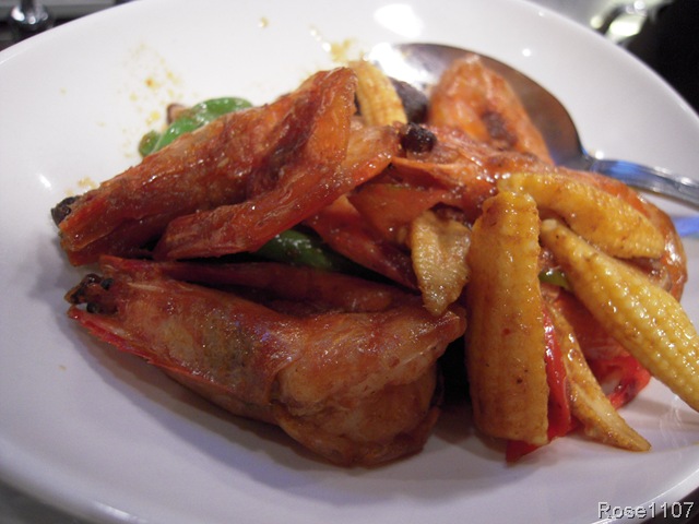<泰式乾燒蝦>汶萊藍蝦與玉米筍.香菇,四季豆.辣椒片,加上紅咖哩