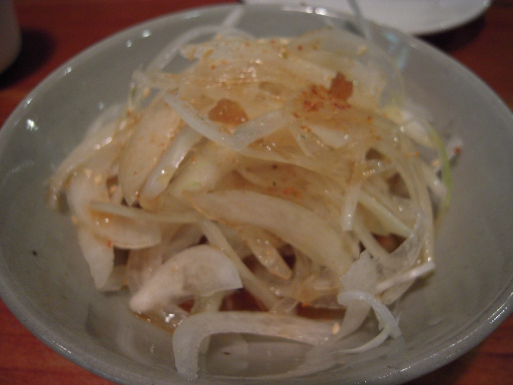入座後~餐廳送上招待的<涼拌洋蔥>,清爽微酸的開胃小菜~