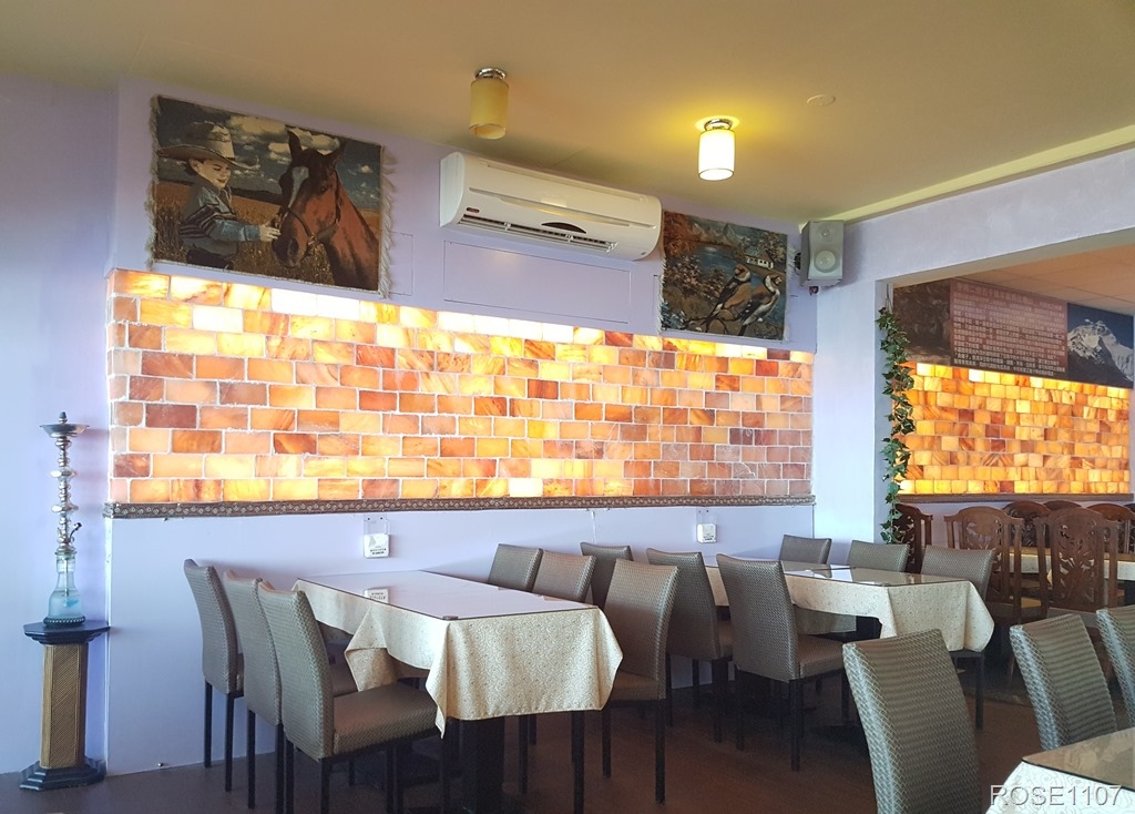 用餐環境寬敞舒適,還有由鹽磚製成的鹽燈牆,