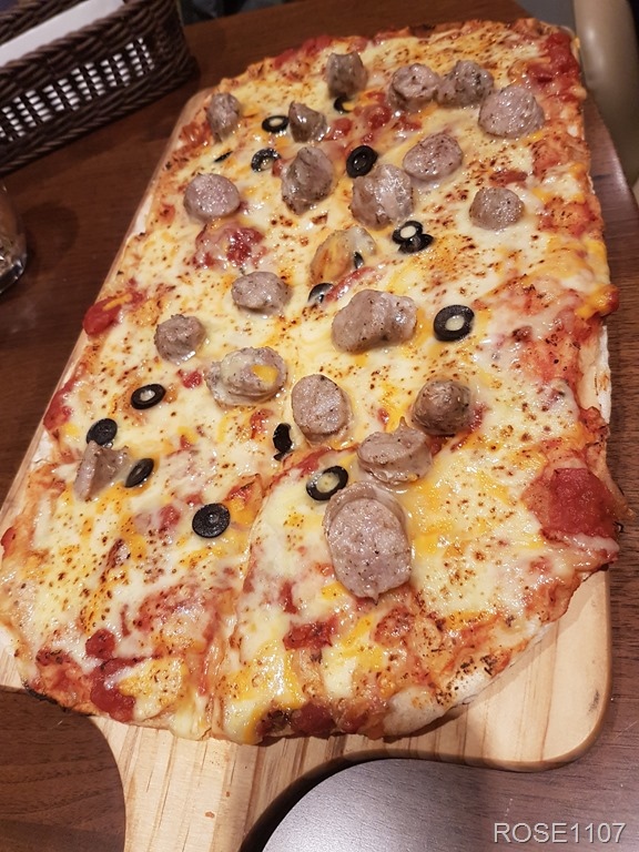 薄片批薩上豐富的德式香腸和香濃起司~超