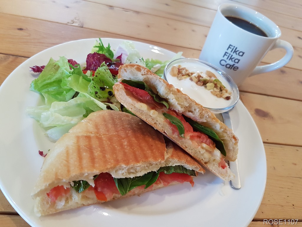 Fika 是瑞典文,意思是一起喝咖啡的休憩時刻.地處台北 伊通公園旁,環境清幽雅緻. 木質桌椅~樸實不浮誇的空間感,十分寬敞舒適怡人, 輕鬆無壓力的工業風. 櫃檯點餐後,水杯餐具皆自助取用. 平日早餐我點的是<蘿勒番茄起司佛卡夏>. 薄切番茄片與新鮮蘿勒葉,食材新鮮清爽不膩口,優格 上的松子滋味佳~ Fika Fika Cafe(台北伊通門市) (02)2507-0633 台北市中山區伊通街33號 *捷運-南京松江站