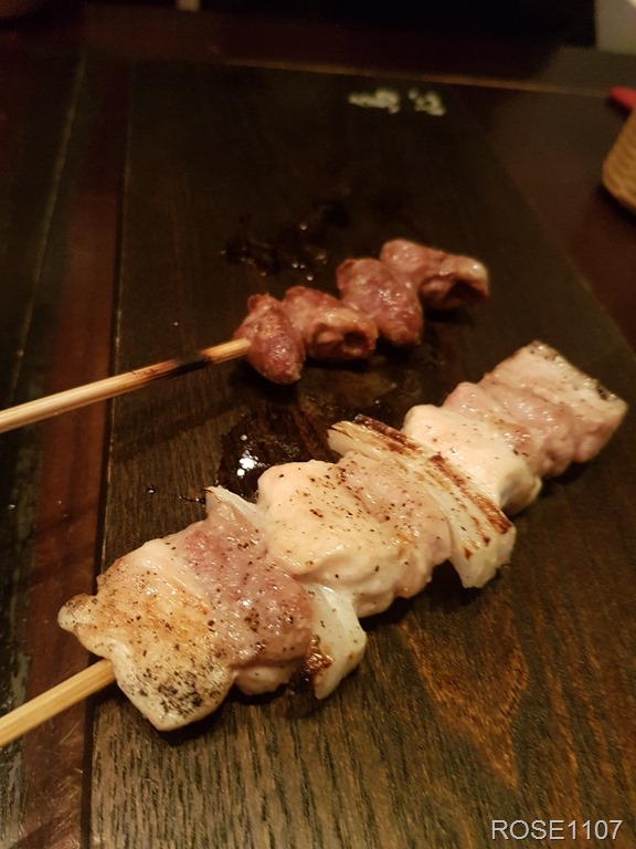 <雞軟骨>&<雞脖側肉>放在木板食器上,倒也