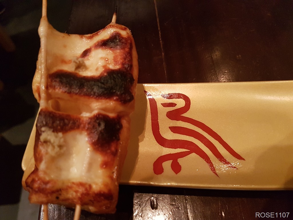 <莫扎里拉起司醬油漬>起司邊烤邊刷上醬油,蠻